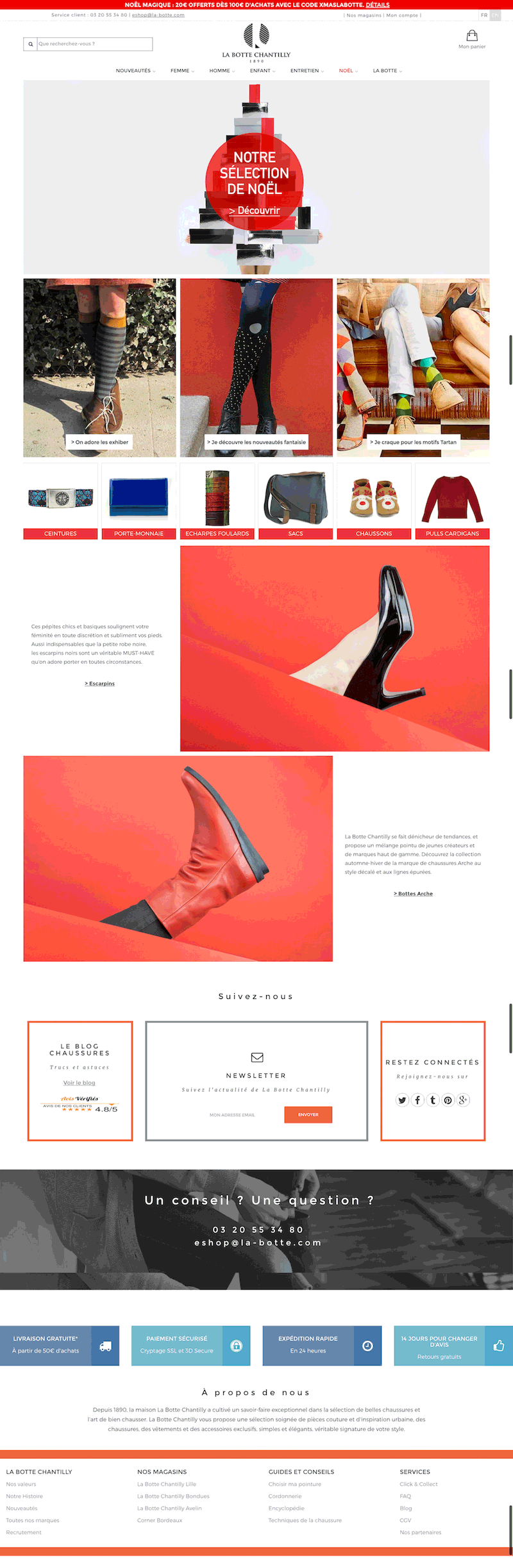 Depuis 1890, la maison La Botte Chantilly a cultivé un savoir-faire exceptionnel dans la sélection de belles chaussures et l’art de bien chausser. La Botte Chantilly vous propose une sélection soignée de pièces couture et d’inspiration urbaine, des chaussures, des vêtements et des accessoires exclusifs, simples et élégants, véritable signature de votre style.