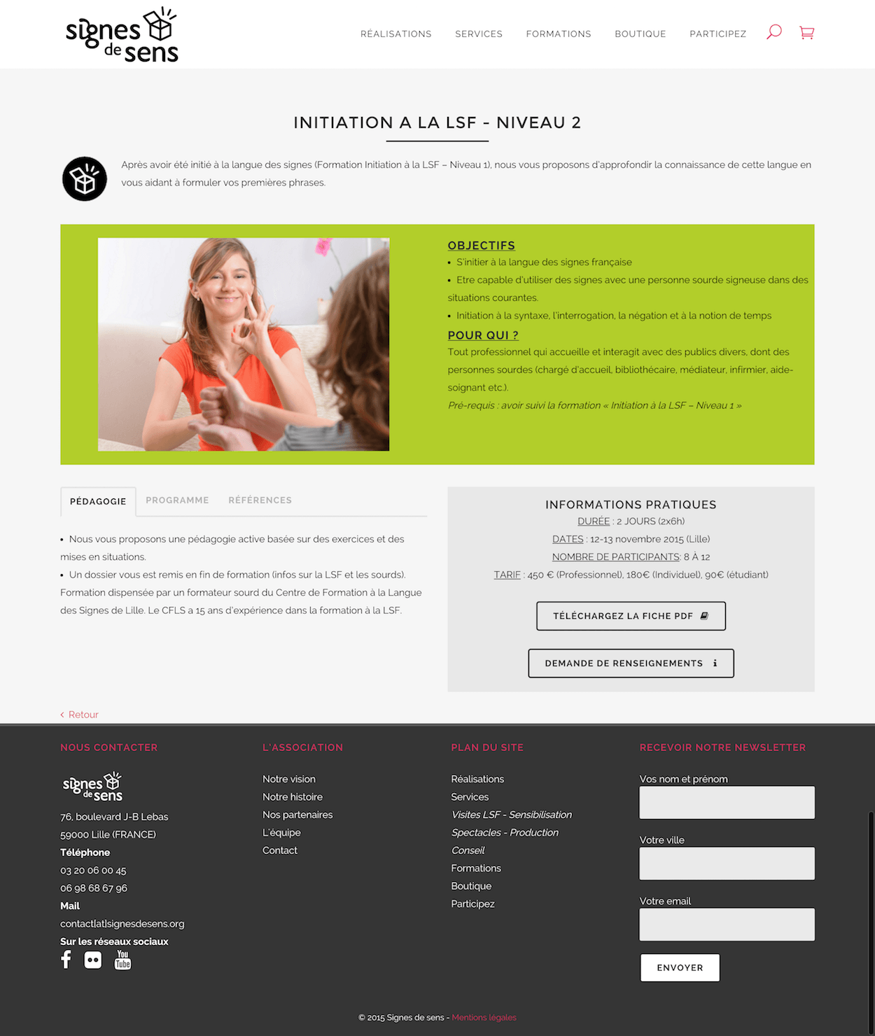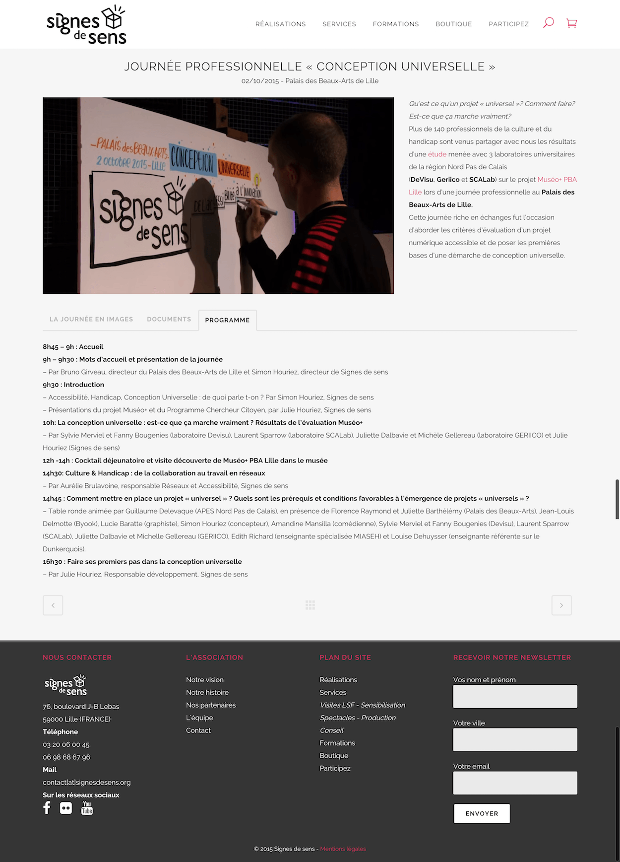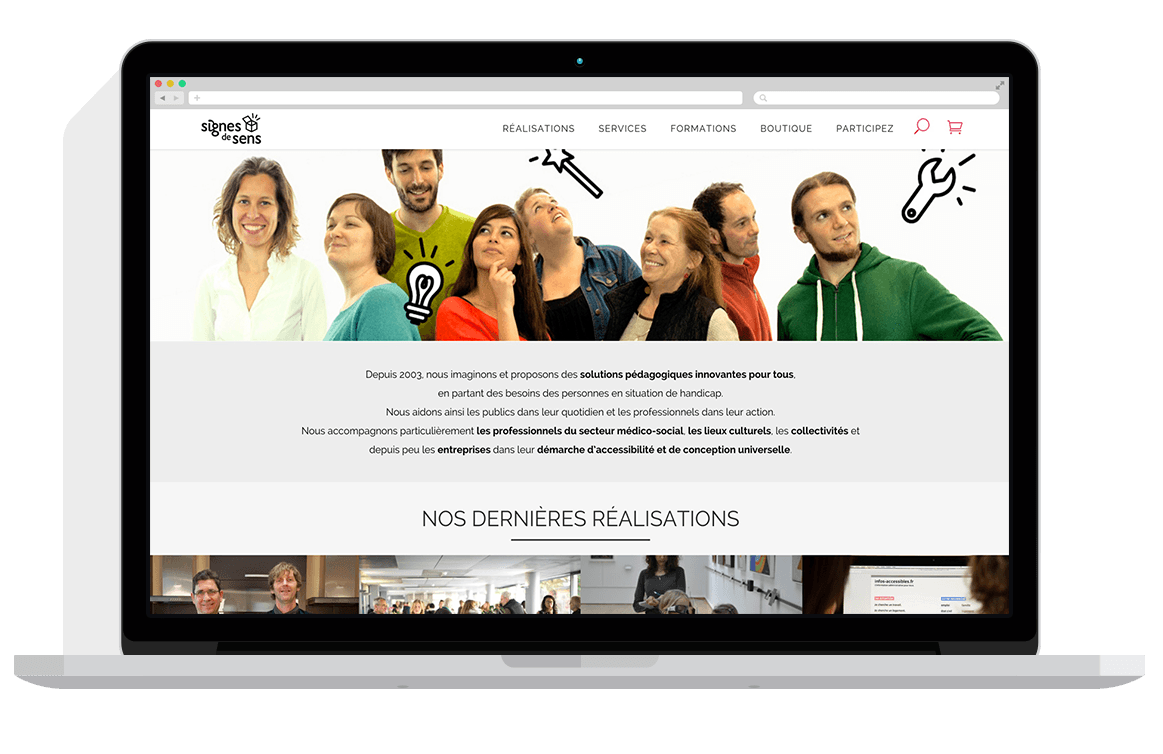 Depuis 2003, Signes de sens imagine et propose des solutions pédagogiques innovantes pour tous, en partant des besoins des personnes en situation de handicap. L'association aide ainsi les publics dans leur quotidien et accompagne particulièrement les professionnels du secteur médico-social, les lieux culturels, les collectivités et depuis peu les entreprises dans leur démarche d’accessibilité et de conception universelle.